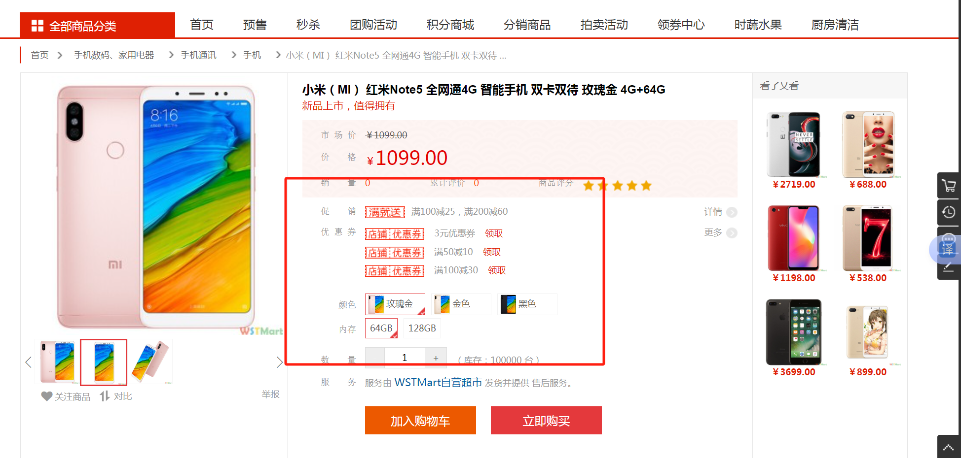 上图“颜色”为允许上传图片,“手机版本”为不允许上传图片。在商品详情上主要表现为: